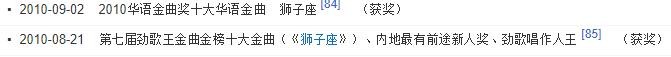 曾轶可也因原创歌曲《狮子座》获第七届“劲歌王金曲金榜”十大金曲、百度娱乐沸点颁奖典礼年度最热门十大金曲、华语金曲奖2010十大华语金曲三项大奖。