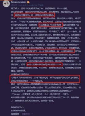至此,曾轶可不得不出来正面发文道歉,而曾轶可发表的道歉声明,细细读来也显得有点不够诚恳,避重就轻。她在文中更是将自己的过错推给情绪化,之后还用小号发表了一段长文。