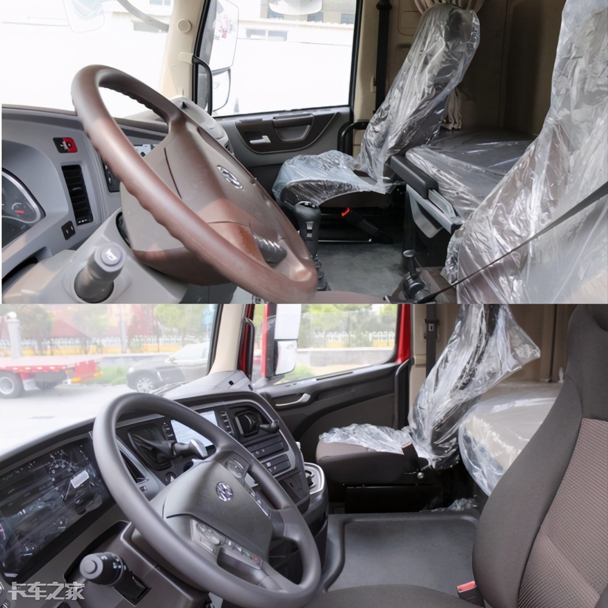 两车都采用了当下最为流行的平地板驾驶室,虽然都未达到全平的标准,但是起码提高了驾驶室里的活动空间。比起传统的商用车来说,两车的方向盘与转向柱的角度其已经很接近于乘用车设计了。