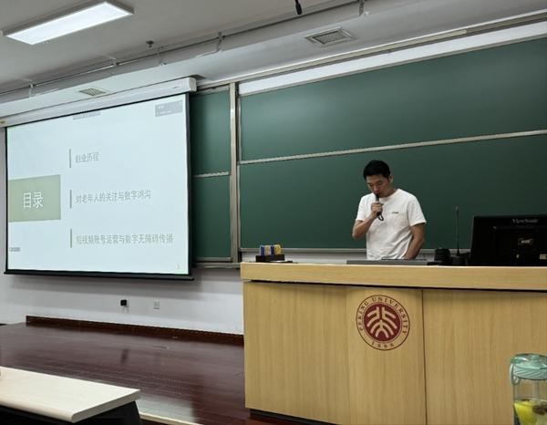 2024年7月,站上北大讲台的那一刻,他紧张极了,介绍完自己,他讲到熟悉的内容,很多老年人不知道怎样接打视频电话、不会关闭弹窗广告,讲到有老人把手机屏幕亮度无意间调到最低,送去维修,最后居然被坑了两百元。