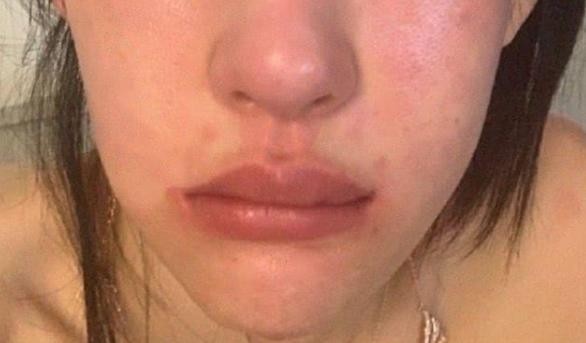 文中还贴上了照片,照片中她脸颊通红,嘴唇红肿,看起来确实触目惊心。