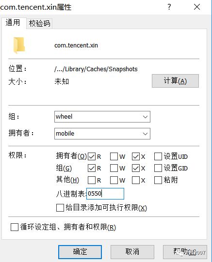 3、修改com.tencent.xin文件夹权限为0550