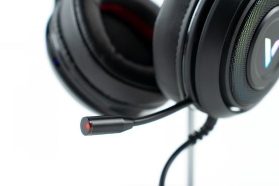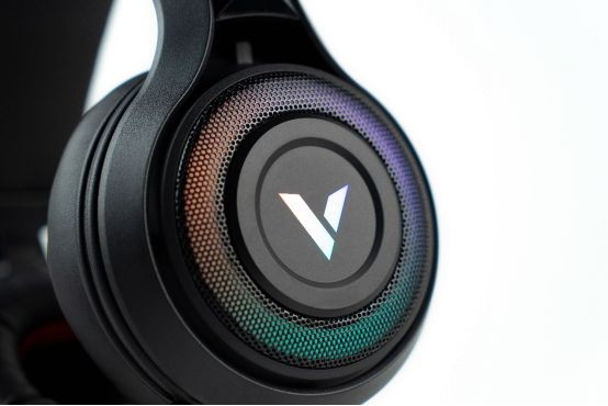 雷柏VH520采用了简洁时尚的整体造型设计,通体哑光黑色的质感表现比较不错。作为一款电竞游戏耳机,其外观设计并不夸张,耳罩表面采用了金属网罩的设计,其中藏有一圈360°的RGB灯环,可在多种颜色中轮循,配合耳罩中心的V字RGB雷柏LOGO,整体灯光显得更加立体。做工方面该耳机比较细致,没有低价位产品上经常出现的毛糙感。