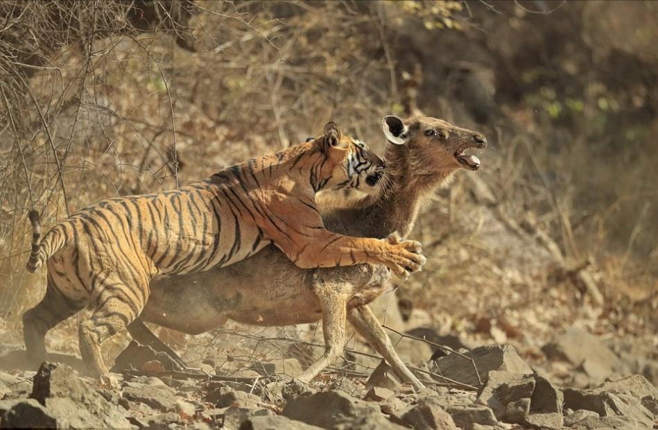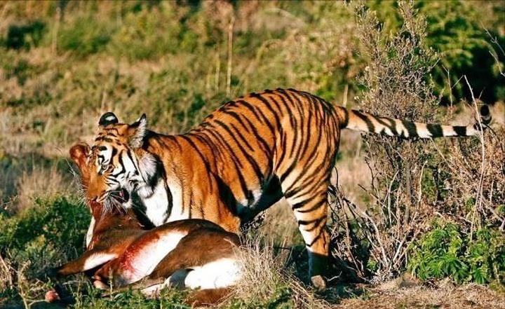 老虎的领地意识特别强,是绝不允许其它大型食肉动物闲逛的,尤其是雌虎,为了捍卫领地和护崽,往往会大开杀戒,独占猎物资源。