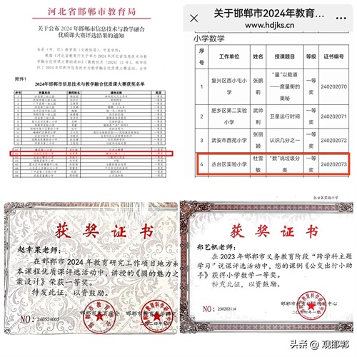 2024年4月,高玮老师、刘月老师参加丛台区小学数学教坛新秀。