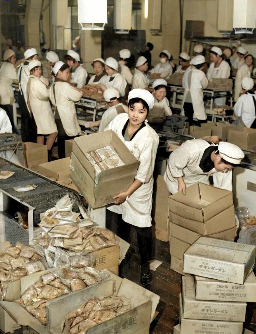 20 世纪 60 年代,日本一家方便面工厂。