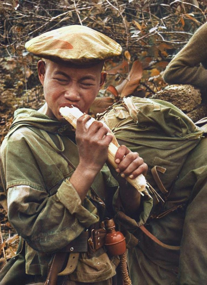 越南突击队员咬甘蔗杆。 1953 年 12 月。