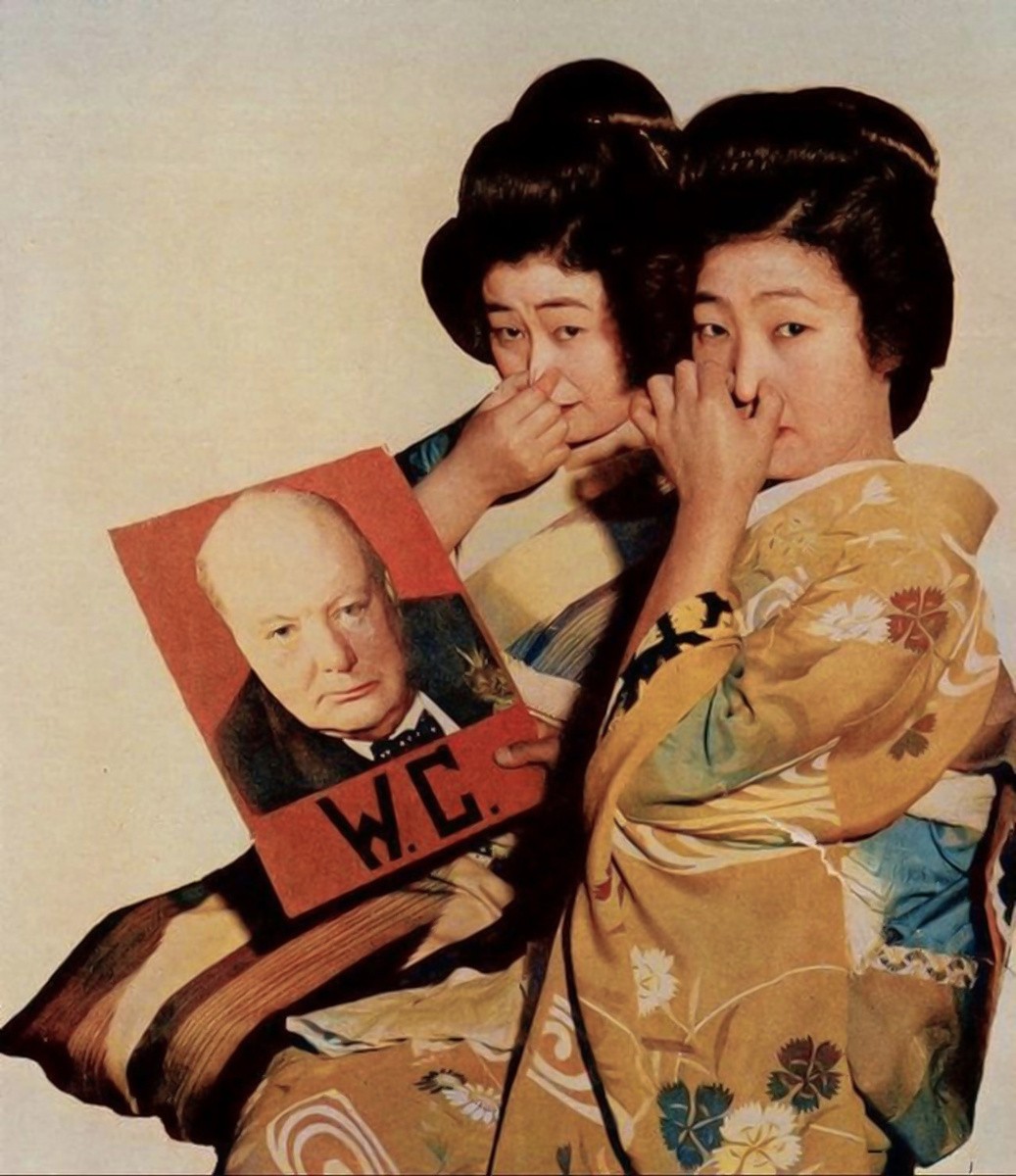 日本女孩向英国首相丘吉尔表明态度。东京,1941 年。