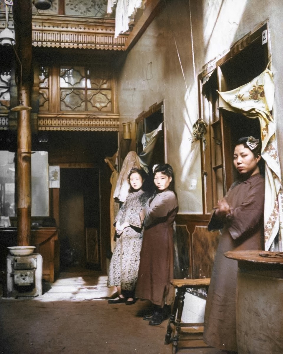 青楼的女子们正在等待客户。中国,1946 年。