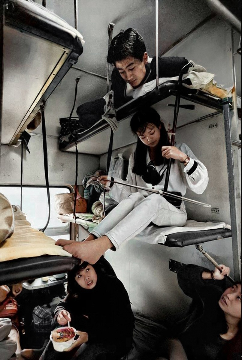20 世纪 70 年代,在中国的火车卧铺车厢。