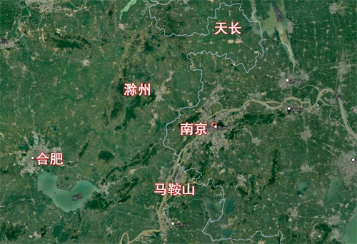 首先,我们先打开地图找到南京市的位置,从地图中我们可以看到,南京市虽然地处江苏省的西南角,但其剩余的三面却被安徽省团团围住,南京与安徽天长市、安徽滁州市、安徽马鞍山市、安徽宣城市均有接壤。