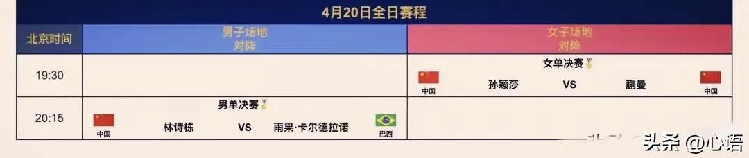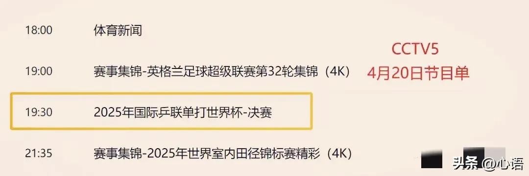 4月20日乒乓球决赛赛程公布,CCTV5、CCTV5+直播表更新