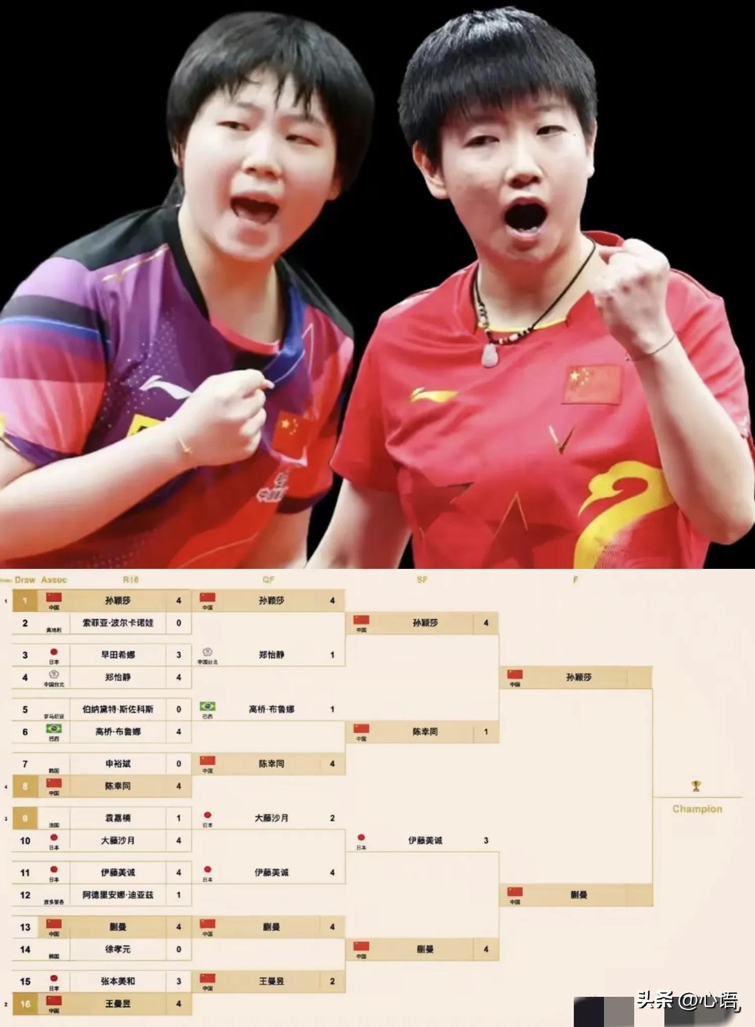 女单决赛:孙颖莎对阵蒯曼,将于今晚19:30开始。