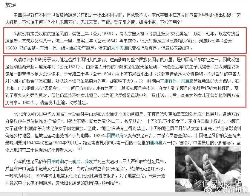 ▍被篡改的历史,把裹脚反向污蔑给汉族