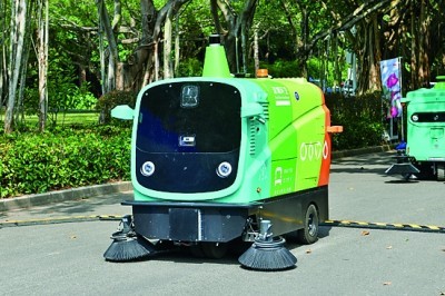 广东深圳莲花山公园拍摄的环卫机器人。新华社记者 梁旭摄