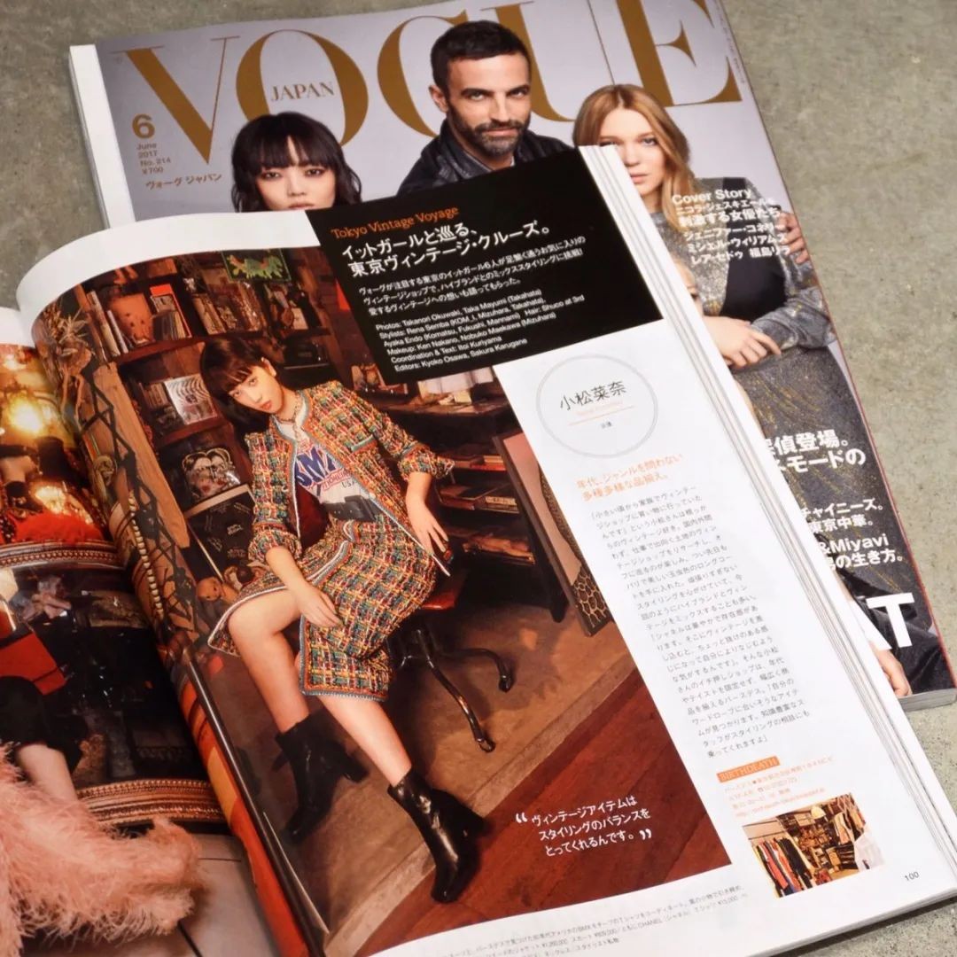 不少明星爱豆都是vintage的忠粉。日本Vouge就找小松菜奈拍过一个 Tokyo Vintage Voyage 的短片,让她带大家逛东京的中古店,搭配出自己的复古风格。