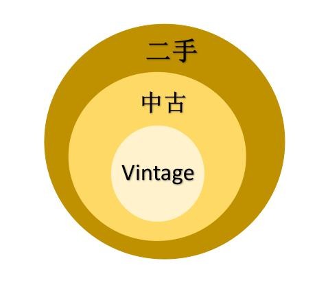 简而言之,二手包含中古和vintage,但是二手≠中古≠vintage。不管各地普及了多少次到现在还是有很多人会把中古、vintage和二手混为一谈,所以小和绘制了下图: