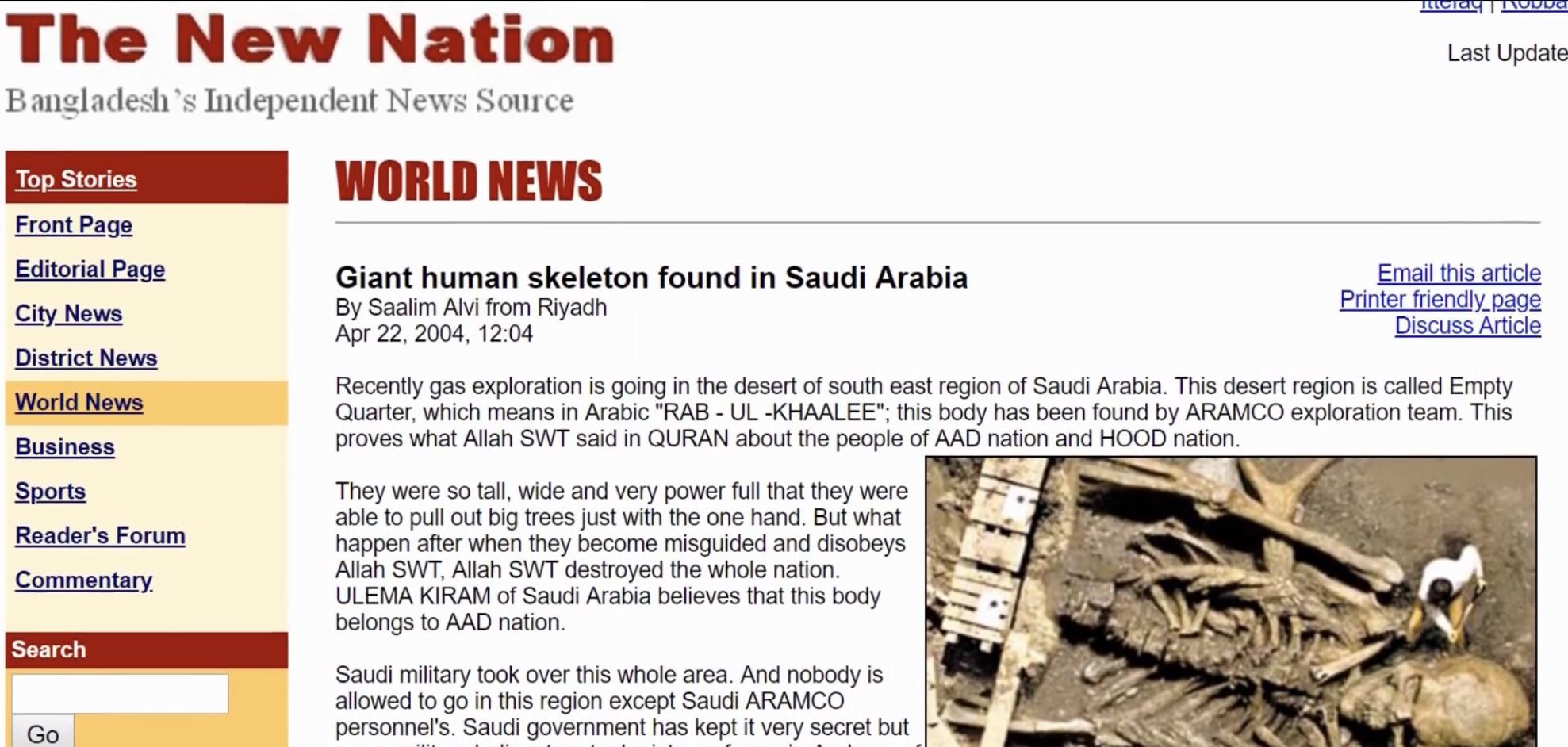 随后考古现场就被阿拉伯军方封锁,但是考古团队的直升机,曾经对巨人骸骨拍摄了大量照片,部分经由Dark net流出,呈现在大家面前,到底这个传说的真相是怎样的呢?