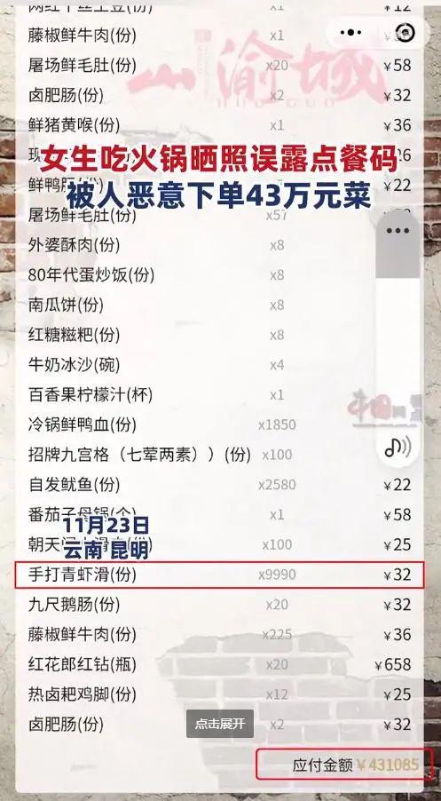 女生吃火锅,上了 43 万元菜品?提醒:这个举动要小心!