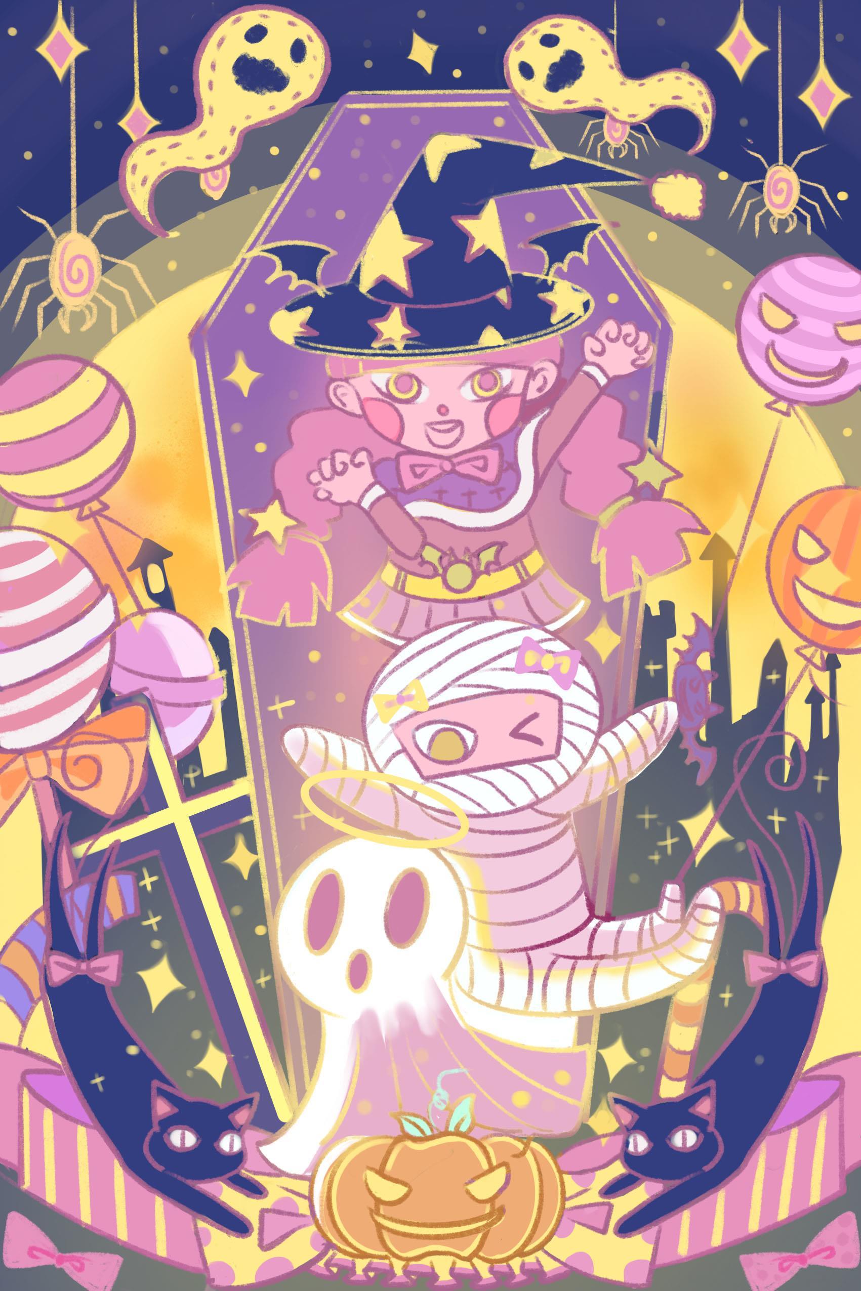 以上万圣节插画均为画友帮签约插画师阿米等创作,已经商用,如需请该位画师定制创作,请留言沟通,切勿随意使用,违者必究。