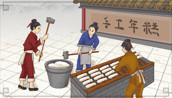 年糕,中国汉族的传统食物,属于农历新年的应时食品。年糕是用大米或糯米,煮成饭用打制或水磨成粉后压制而成的糕,在春节,我国很多地区都有讲究吃年糕。