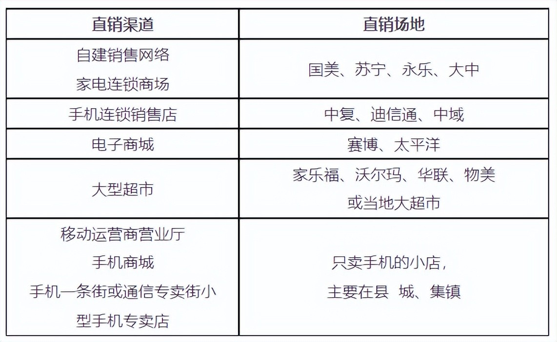 手机生产厂商或运营商根据自身制定的营销策略有重点、逐步在各地市建立其直接管理的销售网络。