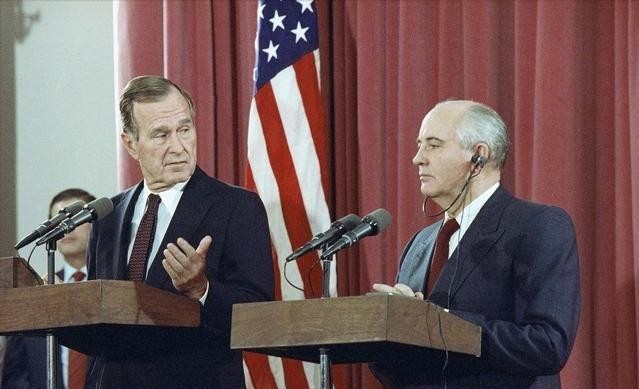 美国总统老布什与苏联末代领导人戈尔巴乔夫