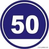 蓝色圆圈内用白色文字标明数字,而且下方还有一截白底,表示机动车驶入前方道路的最低限速。一般设在高速公路或其他道路限速段的起点。 以图为例,限制行驶速度不低于50km/h。