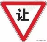 三角形里面一个“让”字,表示减速让行。车辆驾驶人看到这种标志时,必须慢行或停车,观察主路的行车情况,在确保主干道车辆优先并确保安全的情况下才可以继续行进。此标志设在视线良好的交叉口道路的次要路口,比如通往国省道的农村道路路口。