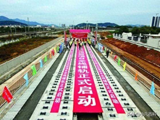 据了解,该项目线路全长6.36公里,其中地下段长5.05公里、地上路基段长1.31公里,隧道比例高达79.40%,设计速度为地上200公里/小时、地下160公里/小时。中铁广州工程局承建了全线正线铺轨任务,长约13.45公里。据中铁广州工程局施工现场铺轨经理介绍,该项目铺轨主要采用常规机铺的方式进行,全线共铺设56对500米长钢轨。莞惠城际北延线全线铺轨启动,为惠州市交通发展和区域经济一体化注入了新活力。