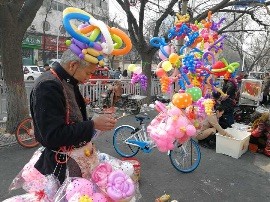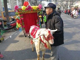 农历新年第一天,不上人的脸上挂着笑容,走着,说着,和家人缓缓前行。一路行来,销售糖人 、棉花糖、年糕等传统食品的摊贩,现场制作吸引了众人观看。城隍庙门前,一头马和一只山羊,被人驯养得颇为听话,供市民跃身骑乘,卖力为主人挣钱。