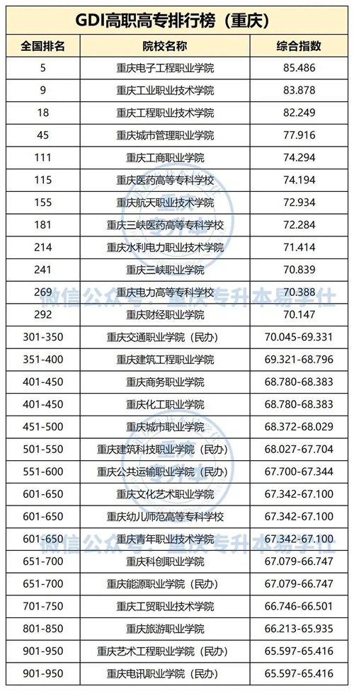 【最新】23年重庆专科院校排名公布,你的学校在哪里?