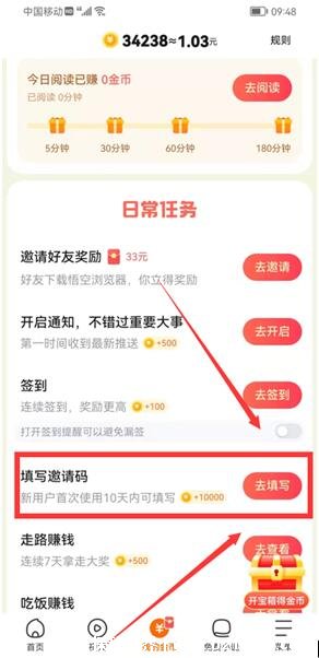 第二部:找到填写邀请码(J99935201)一栏,点击后面的【去填写】按钮。