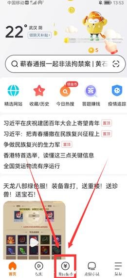 第一步:打开悟空浏览器app,点击底部的【我的金币】按钮。