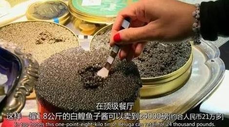 这段吃饭的场景让人血脉喷张印象深刻,而我感兴趣的则是这鱼子酱到底多少钱还需要以重量收费,后来在看了一期以伦敦富豪为主题的BBC纪录片《亿万富翁的饕餮盛宴》中我终于找到了结果,在顶级餐厅,欧鳇的鱼子,一罐1.8公斤的白欧鳇鱼子酱价值24000榜,换算成人民币有21万人民币之多。