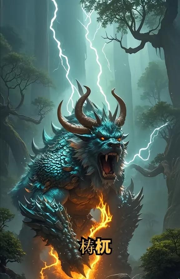 梼杌体型庞大,状如老虎,毛发很长,人面虎足猪口牙,尾巴长达一丈八尺。《神异经・西荒经》记载:“西方荒中有兽焉,其状如虎而犬毛,长二尺,人面,虎足,猪口牙,尾长一丈八尺,搅乱荒中,名梼杌。” 它性格凶猛,好勇斗狠,是战争和灾难的象征。梼杌力量强大,无人能轻易制服它。它生活在偏远的荒野之中,时常在山林间横冲直撞,破坏山林植被,遇到人类也会主动发起攻击,所到之处生灵涂炭,常被视为战乱的预兆。
