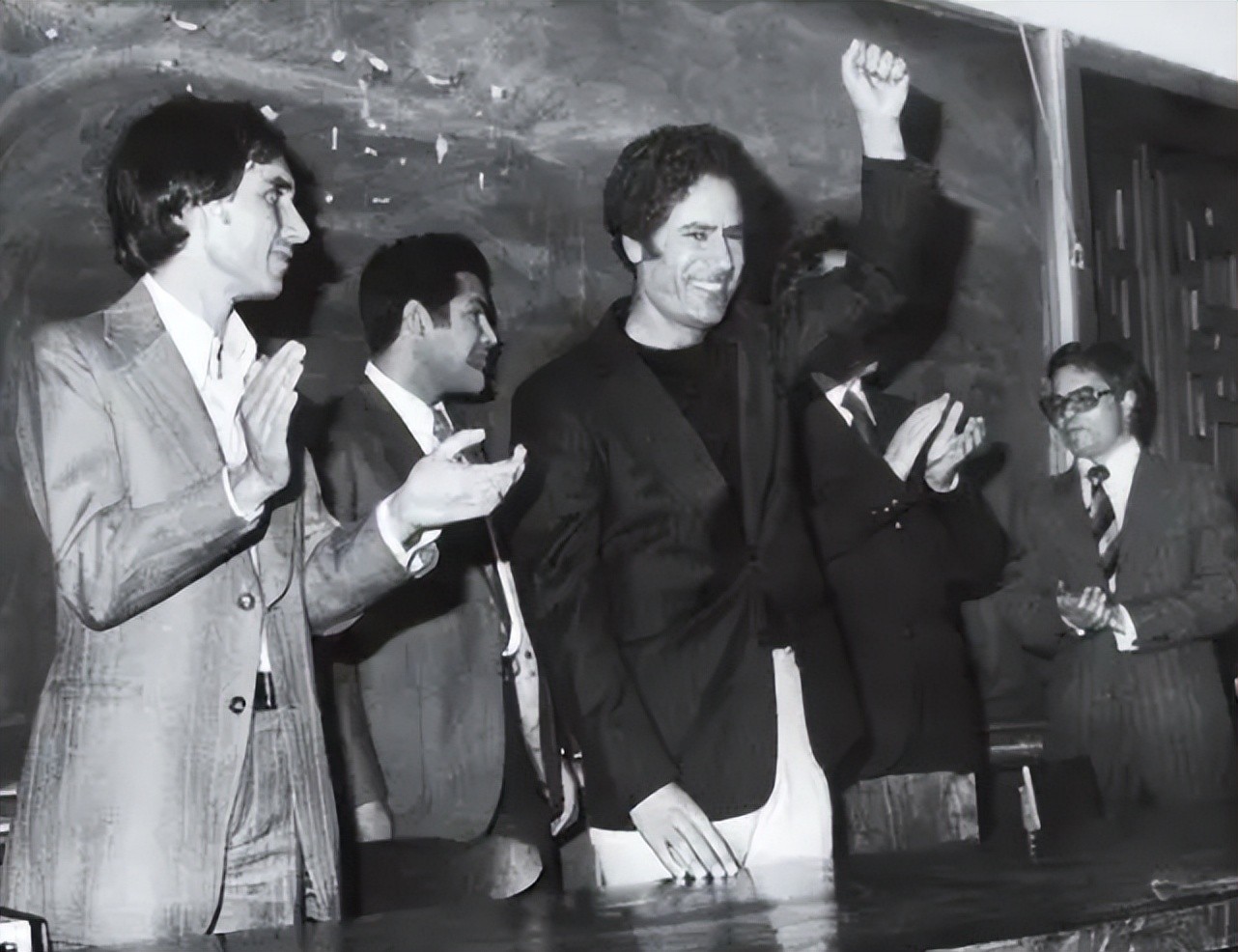 卡扎菲也不慌,当着那一屋子的人的面找了一张纸,在那一屋子人的注视下呀,赶紧写了几个重点。但由于卡扎菲也是第一次政变,又遇到这种突发状况,本来就没啥经验,稿子还掉了,这不就很搞人心态吗,所以整个演讲过程十分紧张,他具体讲了啥民众也没有怎么听懂,但唯一可以知道的就是,这睡一觉醒来,国家就变天了。