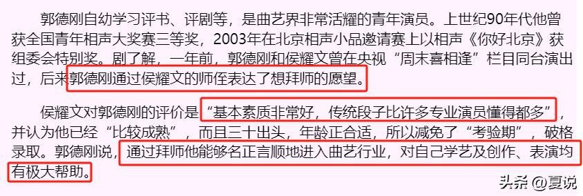 很多人看到这里,都忍不住惊讶,郭德纲,何德何能,竟然在侯耀文老师的28位入室弟子中,名声在外,大器早成,功成名就?