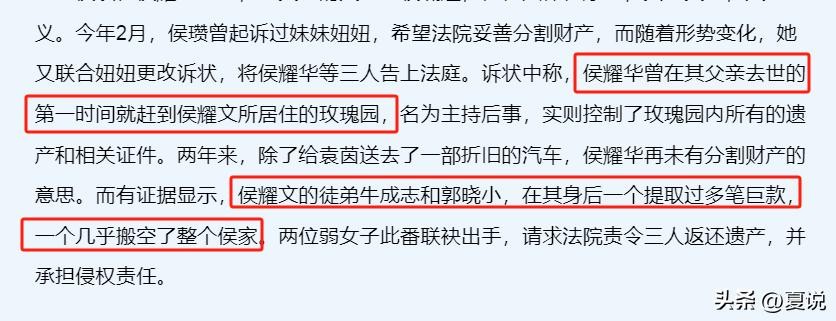 亲哥侯耀华,霸占了侯耀文死后的8000万遗产,搞得侯耀文没钱下葬。