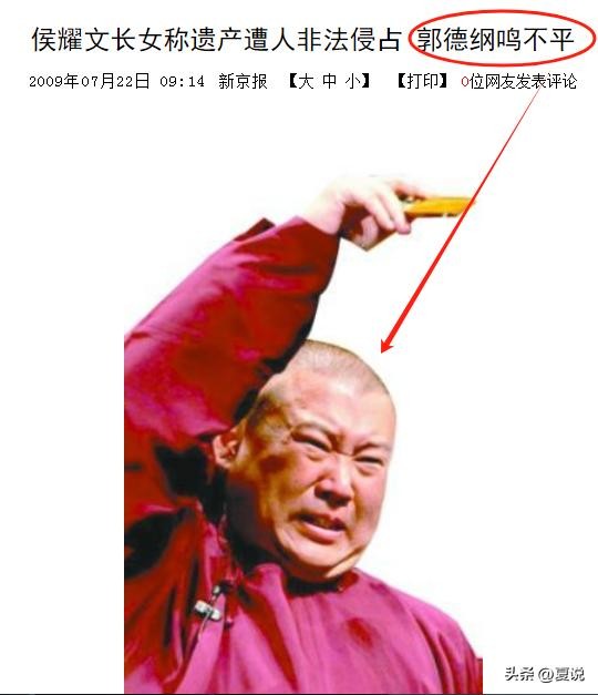不料,3年后,侯耀文突然去世,郭德纲出头为师傅的这个女儿,妞妞,发声,争遗产,引起师叔侯耀华的强烈不满。