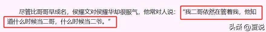 尤其是,爱管名人弟弟侯耀文,常在人前,以二爷自居。