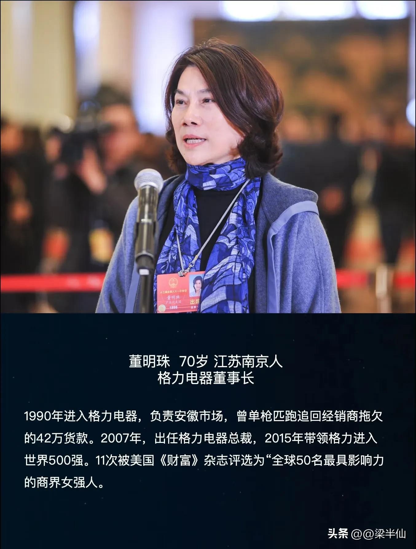 董明珠堪称商界传奇,她将格力电器带入了一个新的辉煌时代。1990年,董明珠加入格力,从基层业务员做起,凭借着果敢的决策和强硬的管理风格,一路晋升,最终成为格力电器的董事长兼总裁。在她的领导下,格力专注于技术研发和品质提升,从一家地方空调企业发展成为全球知名的家电巨头。她力推技术创新,使格力掌握了多项核心技术,产品畅销全球;她狠抓质量管理,让格力成为品质的代名词;她还积极拓展市场,带领格力在激烈的市场竞争中脱颖而出。董明珠以坚定的信念和无畏的勇气,打破了商界的性别壁垒,为中国女性在商业领域的发展树立了光辉的榜样,激励着无数女性勇敢追求自己的事业梦想。
