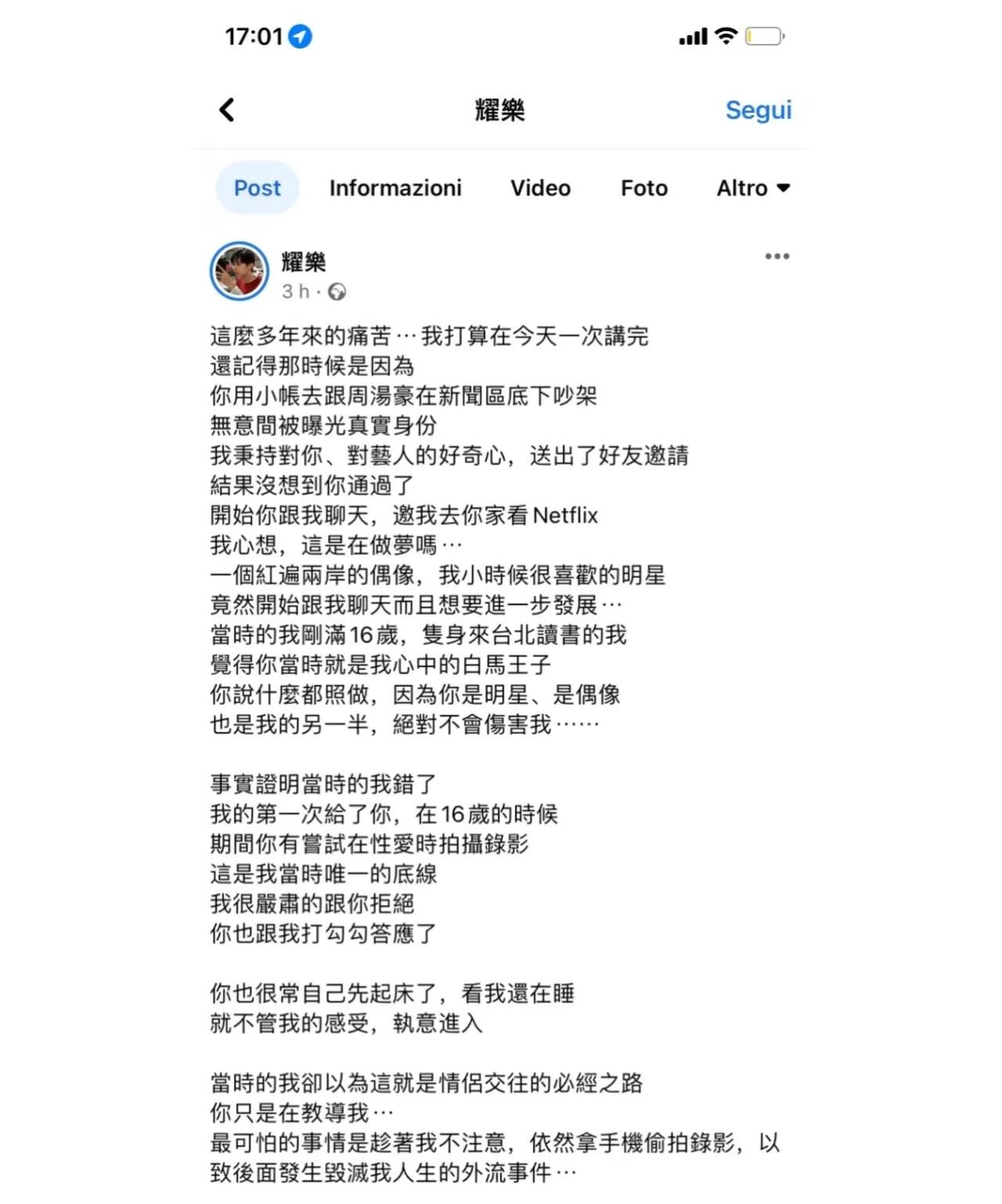小男友耀樂说自己绝对不是为了流量,如果需要流量,自己早就站出来了,因为在捷运被性骚扰,联想到自己悲惨的感情和生活,担心炎亚纶再利用明星光环,去祸害其他小男孩,所以才勇敢站出来。