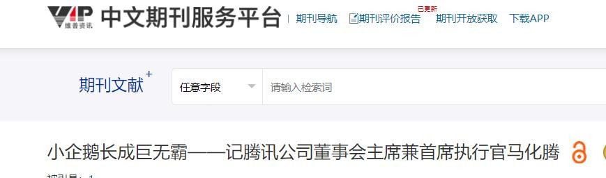 中文期刊:小企鹅长成巨无霸——记腾讯公司董事会主席兼首席执行官马化腾