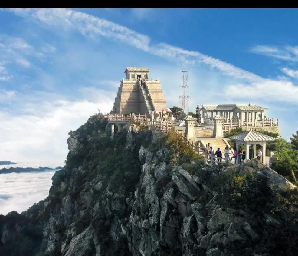 龟蒙顶南麓是周初所封,专事祭祀蒙山的颛臾国建此。后人建谒蒙祠,又称万寿宫。于蒙顶俯瞰群峰,无不匍匐膝下,万壑流云,烟霞明灭,景色壮观,山中有小风门、大风门、快活岭等胜迹。