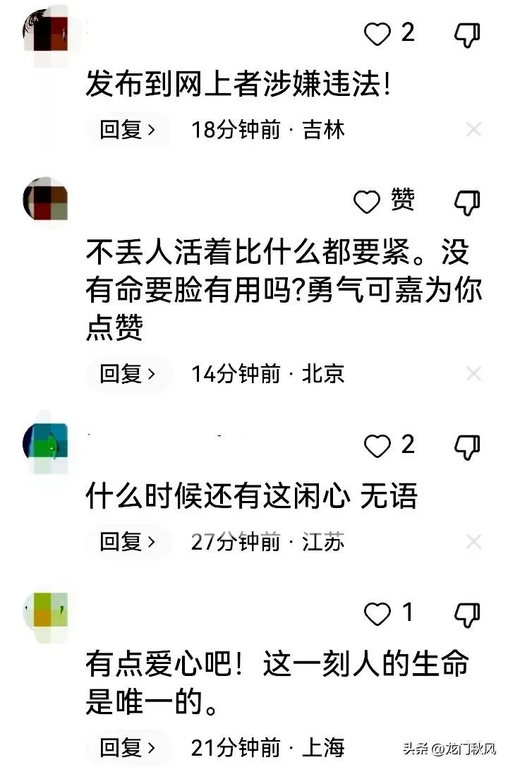 言论自由也该有度有底线,网络平台更不是低级趣味的“垃圾场”!像这种视频它是怎么发出来的?审核是怎么通过的?这是人家在逃命,不是“皇帝的新装”!我们的大多数网民也不想当鲁迅小说《药》中的那些麻木而又愚昧的“看客”!