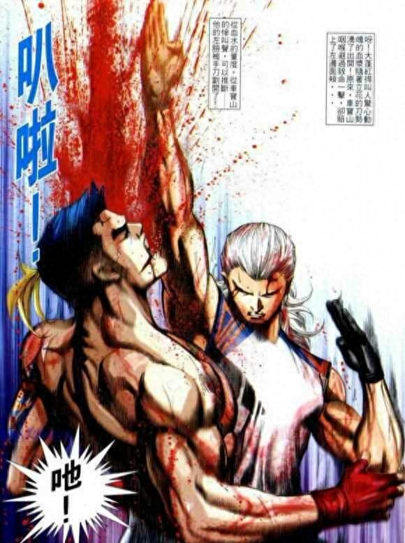 车宝山其人,我觉得是整部漫画中最精彩的一个。短暂的生命就如流星一闪而逝,却那么的耀眼辉煌。不做完人,便做禽兽,一直是车宝山的座右铭。 吊打大天二,力克立花正仁,山鸡,伊健,浩南面对他都要败阵。我个人喜欢他甚至更甚主角陈浩南,在江湖巨人排名战上坐上了香港大路元帅的交椅。然而车宝山被复仇的立花正仁用手刀在脸上砍出一道疤痕,彻底毁了车宝山的完美。 K-1联赛时的一往无前;和太子之间的友情;甚至连死都死得那么的精彩。车宝山一生立志要做个完美的人,可惜在被立花正仁手刀重伤左半边脸之后,这种完美被打破了,也将他推向了一条不归路。