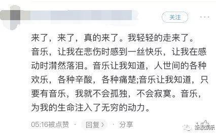 “在这个浮躁的社会,听到这样的作品,让人充满感动的。我感觉每个人都可以在这首歌里听到自己的故事,我们需要这样有态度的音乐。”