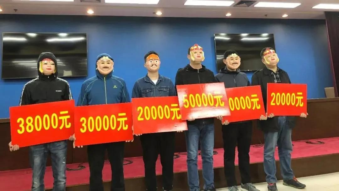 ▲举报人“唐僧”、“沙和尚”、“光头强”前来领奖