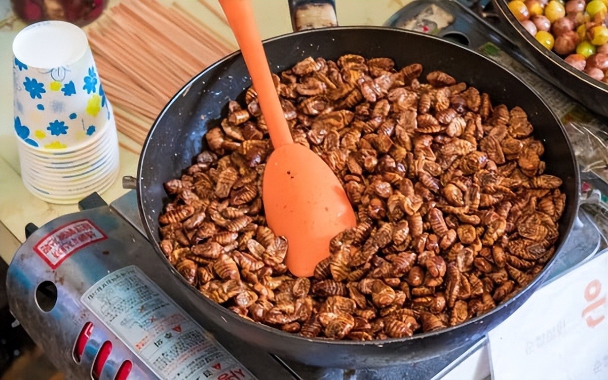 Beondegi 是韩国街头饮食文化中的著名菜肴,但它们非常奇怪,因为它们是由蚕蛹制成的,这种生物让很多人感到害怕。诞生于朝韩内战时期,这道菜是为朝鲜士兵做的,现在越来越受到人们的欢迎,因为它提供了人体所需的多种营养物质,如钙、磷、蛋白质……本代吉仅在韩国有售。特别梵音Beondegi 加工非常简单,但在韩国人的巧手下,蚕蛹带来了一种油腻的、奇异的美味。虽然它们的外观并不漂亮,也有一种特殊的气味,让很多不熟悉的人感到害怕,但如果你曾经踏足过韩国,一定要毫不犹豫地尝一次,体验一下这种刺激的感觉。